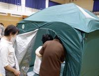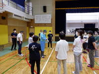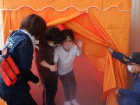操作方法などを中央防災の方に教えていただき,ホースやノズルの操作方法を確認しました。