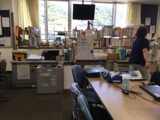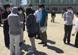 一時避難場所になる屋上まで行くと周辺の景色や道路を見て,それぞれの自治体からの避難経路などを確認されました。また,体育館では被災所になった場合に,新型コロナ感染症対策も含めどのようなことが必要になってくるかなど,熱心に話し合われました。