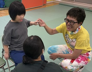 パンドルさんは、体全体でリズムを取りながら演奏します。はじめは自分の席で聴いていた子どもたちも、だんだん心と体が動き出します。スカーフを振ったり、手拍子をしたり、友だちや先生と一緒にダンスをしたり。最後には、演奏しているパンドルさんの間近まで近づいて、スティールパンの音や重なりを堪能していました。
